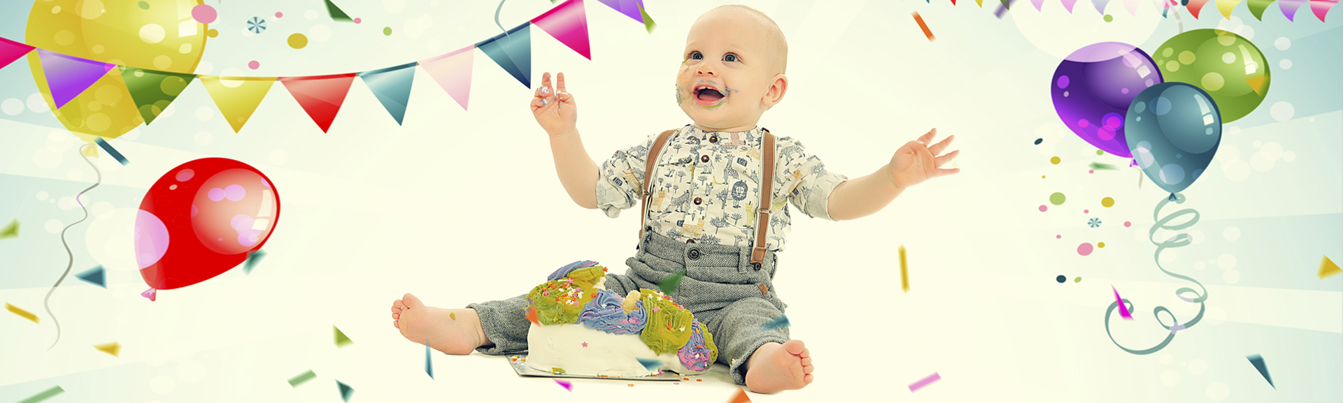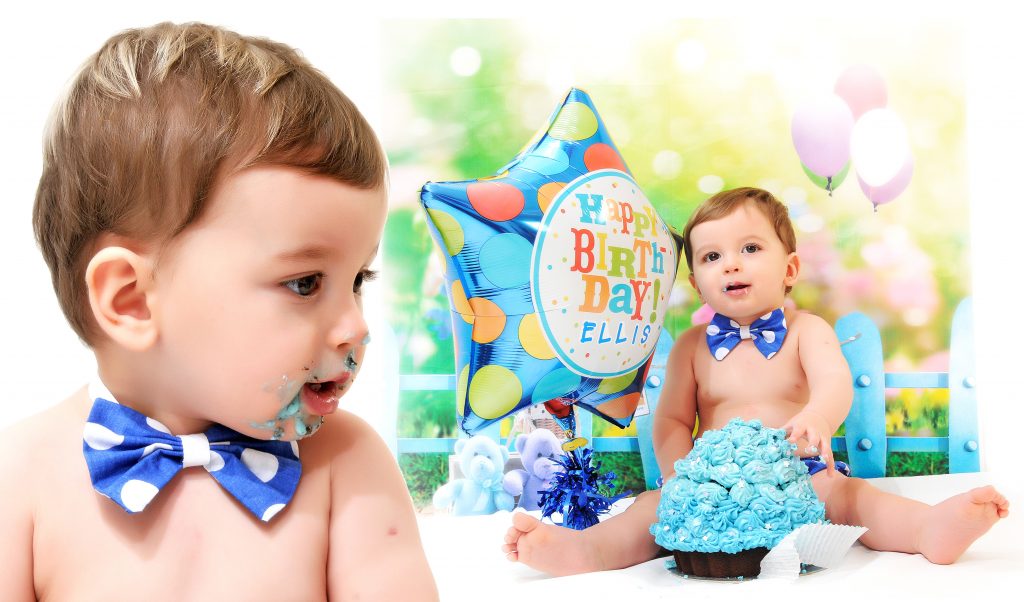 Colourful cakes look the best and the squishier the better! We also recommend bringing along a round helium balloon with happy birthday on along with everything else you think will capture the moment and increase the fun; toys, teddies, balls, party hats, bow ties, etc.. A change of clean clothes are an absolute must! We have lot’s of birthday props in the studio too which will also help set the birthday scene.